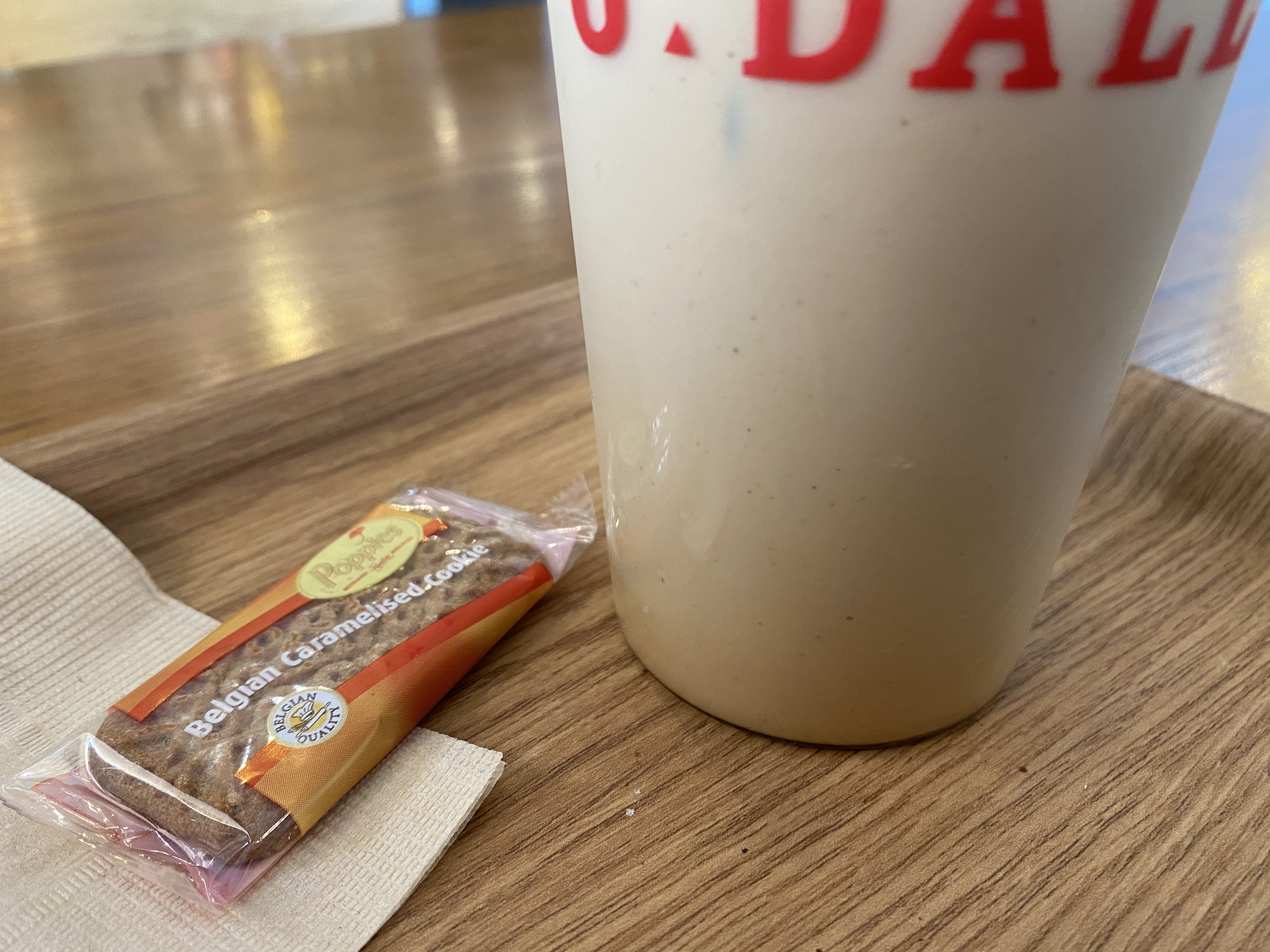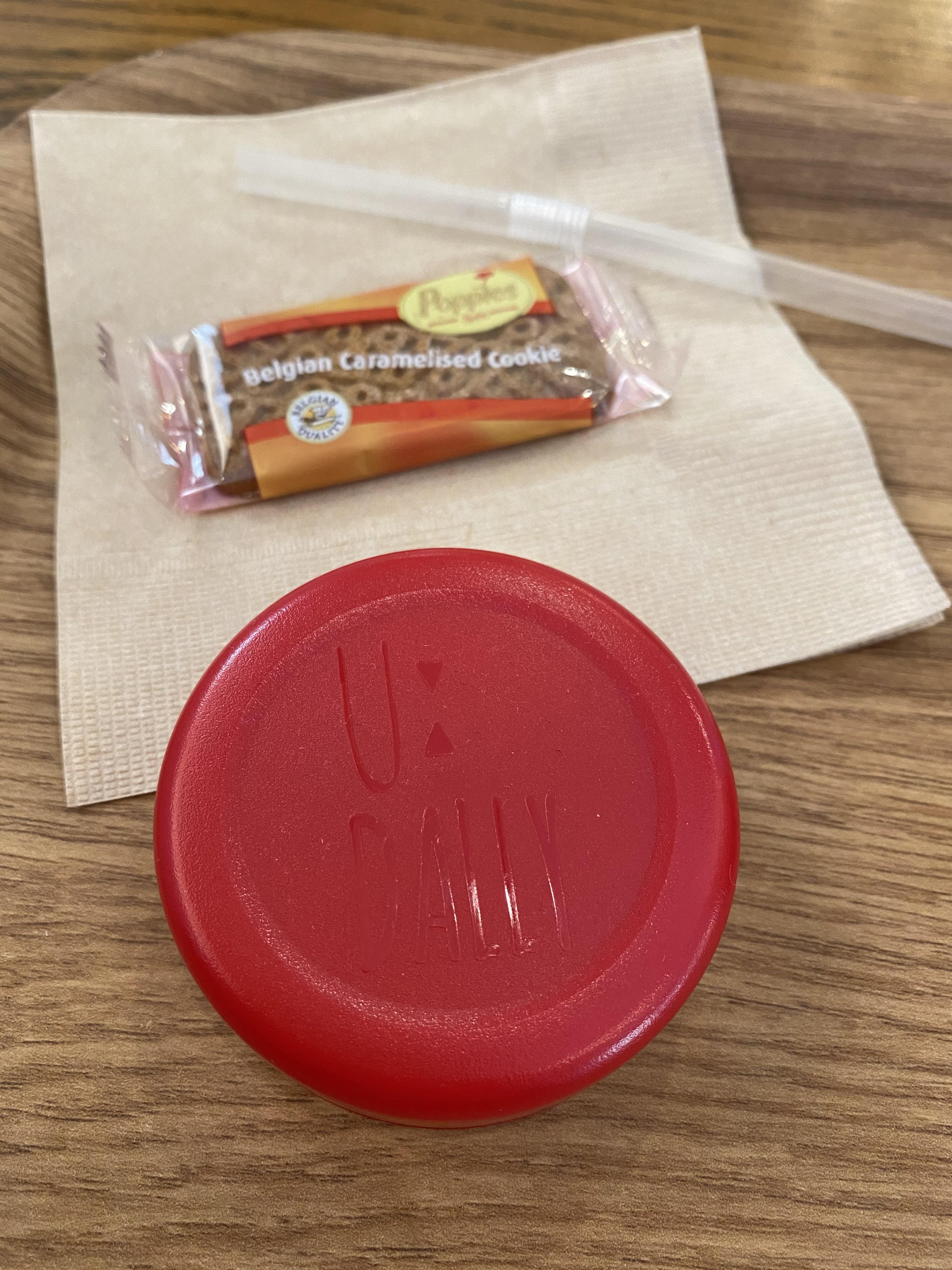달콤 시원한 바닐라 라떼와 서비스로 준 과자예요.