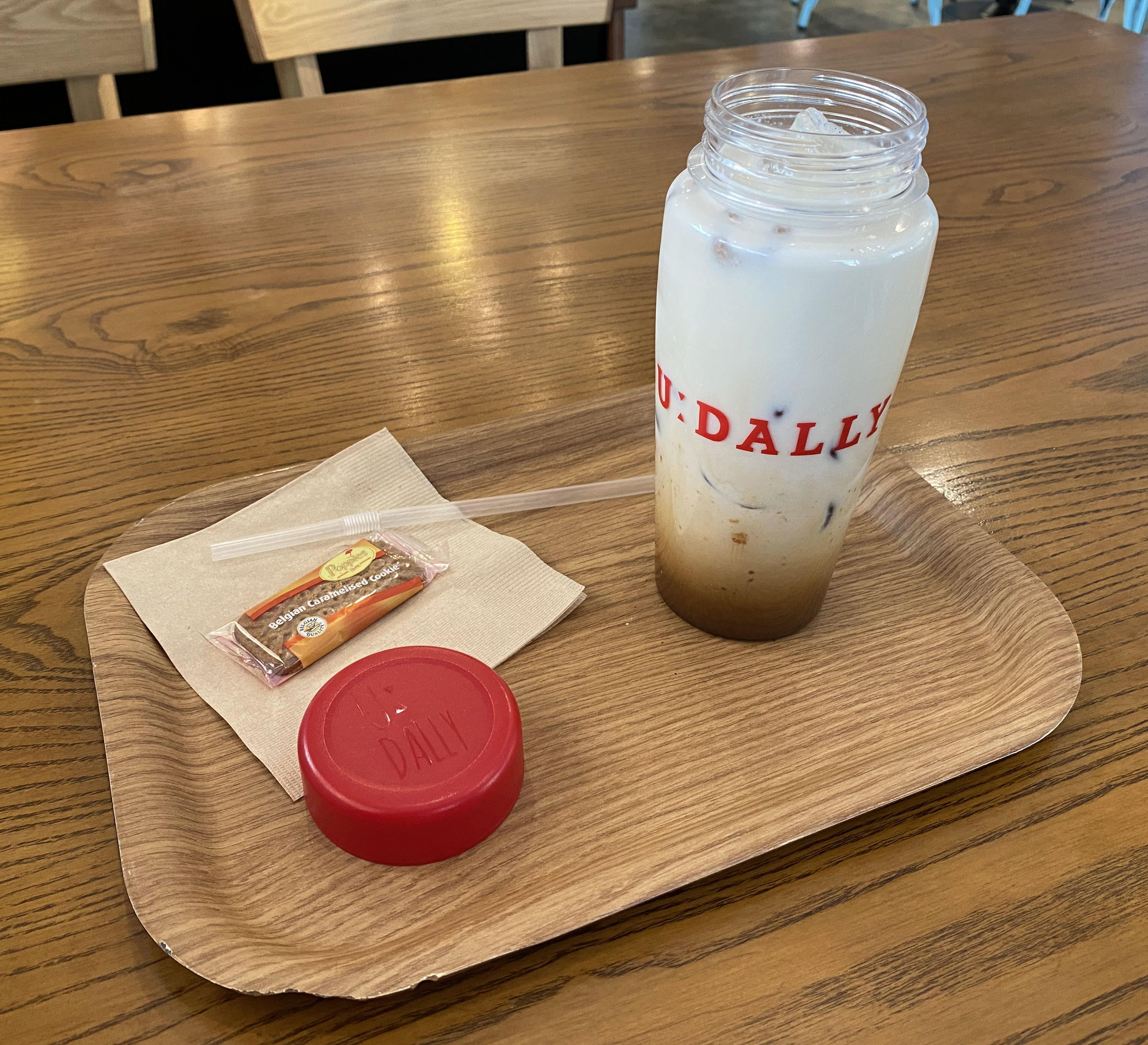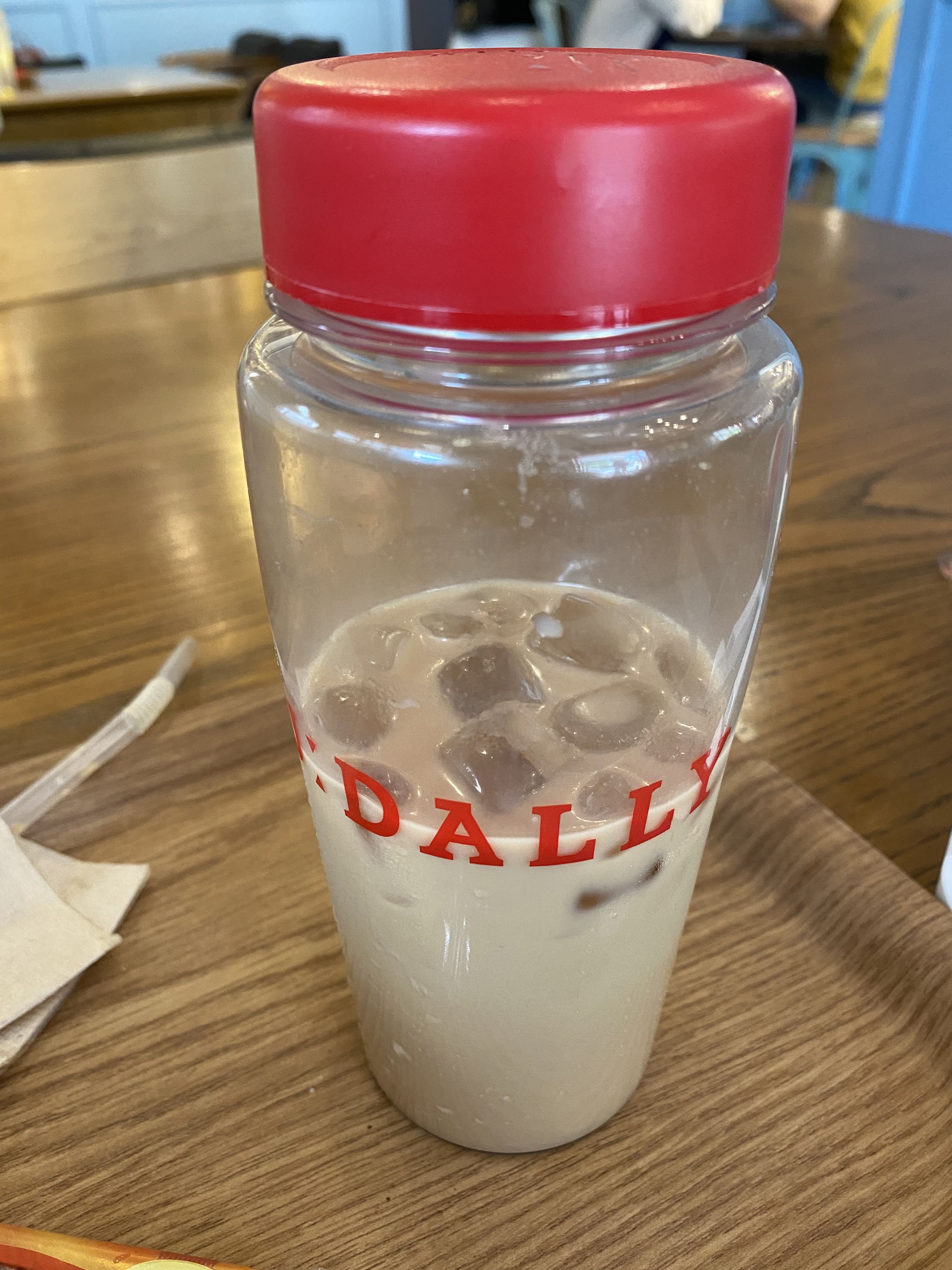 빨대로 우유와 시럽을 고르게 섞어주고 뚜껑 덮어보았습니다. ㅎㅎ