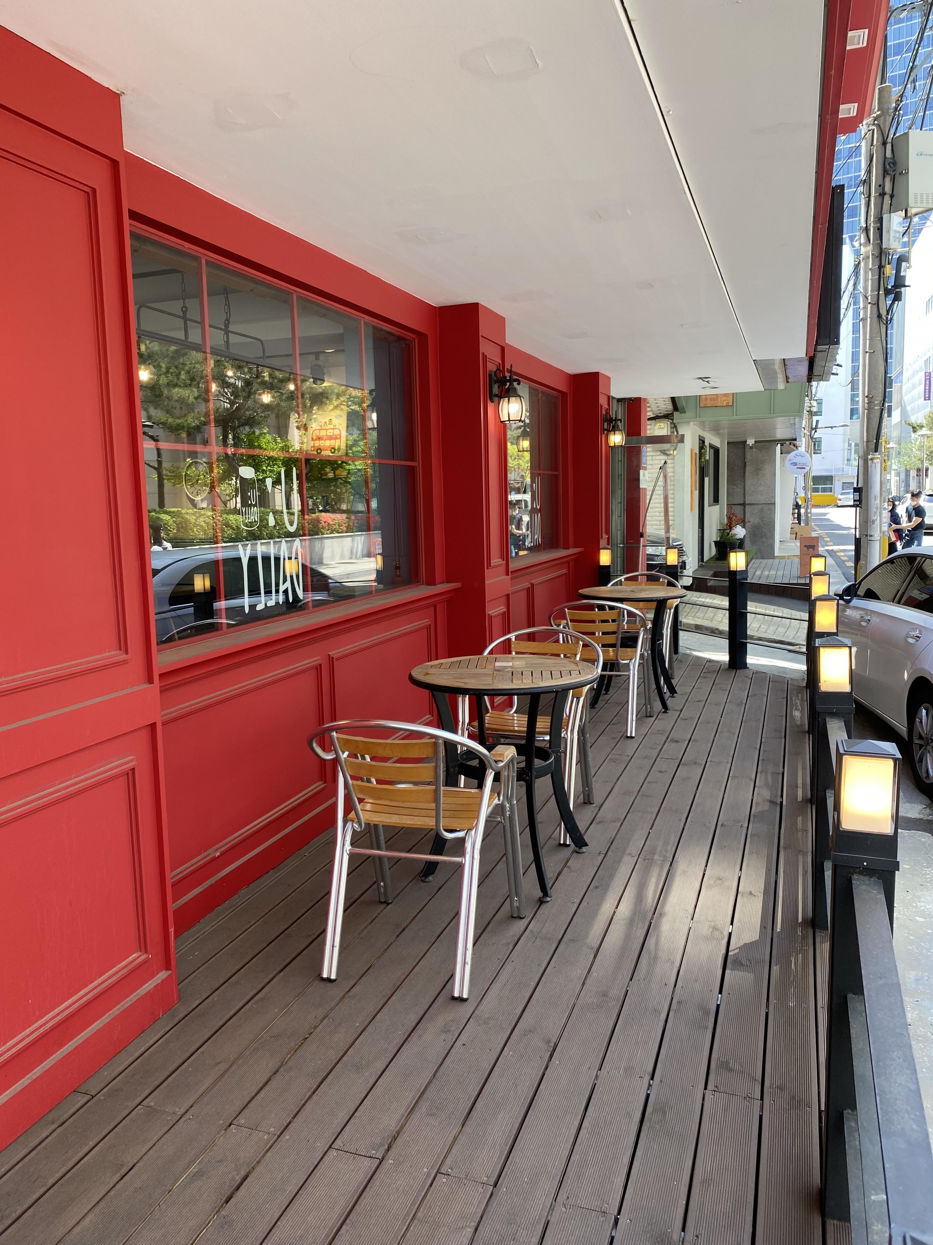 매장 입구 옆에는 테라스가 있습니다.